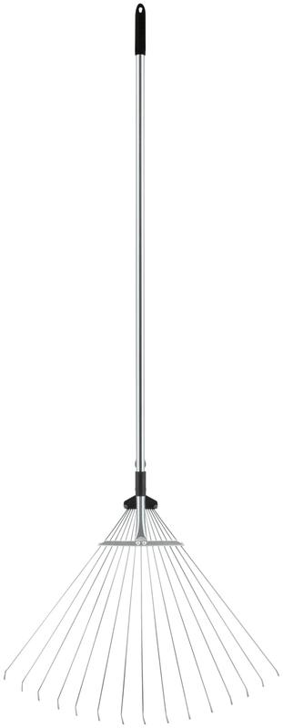 Грабли веерные регулируемые, телескопические. Для уборки листьев и скошенной травы. 15 раздвижных зубьев (180 - 630 мм). Телескопическая ручка. Материал: инструментальная сталь, закаленные зубья, пластиковая накладка на черенок.