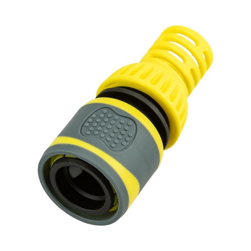Быстросъемный коннектор предназначен для соединения шлангов с адаптерами на распылителях, разветвителях, дождевателях и т.д. Используется при организации систем полива и систем водоснабжения. Функция «аквастоп» позволяет подключать к шлангу насадки, не перекрывая подачу воды. Специальная защита от перегибов предотвращает заломы шланга в местах соединения, что существенно продлевает срок его службы и обеспечивает стабильный поток воды. Коннектор выполнен из высококачественного АБС-пластика, стойкого к ультрафиолетовым лучам и низким температурам. Благодаря термопластичной резине не скользит в руках. Продуманная конструкция обеспечивает герметичность и надежность соединения, что является залогом стабильной и эффективной работы системы полива. Изделие просто и быстро устанавливается вручную без использования специальных инструментов и крепежных элементов. При организации системы полива важно, чтобы диаметры всех элементов совпадали!