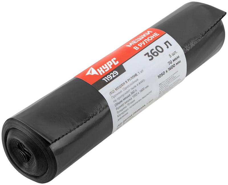 Мешок для строительного мусора ПВД прочные 360л 1050х1600мм толщина 70мкм (уп.5шт) КУРС 11929