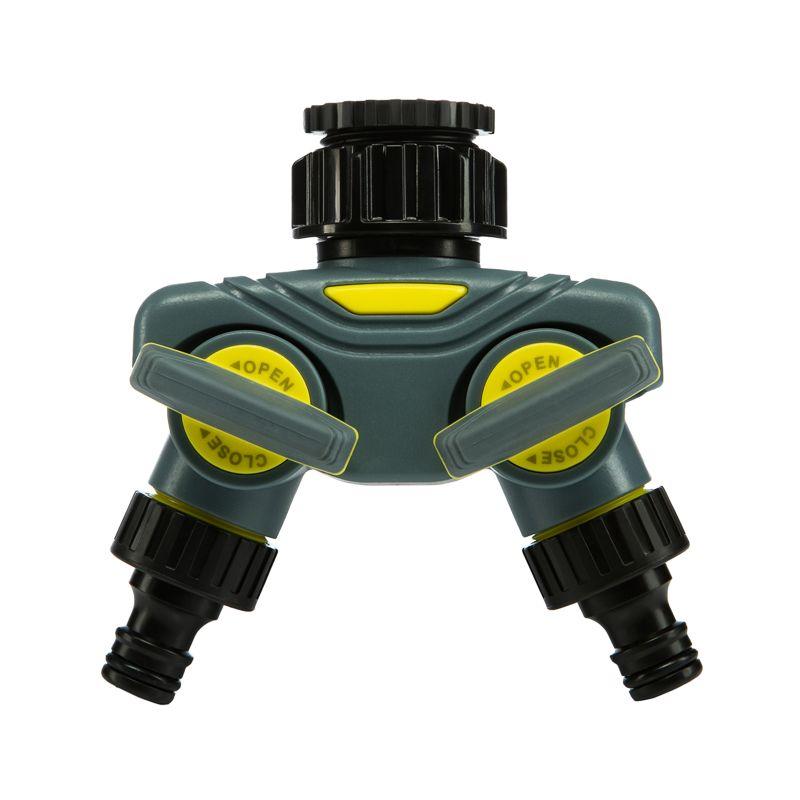 Разветвитель предназначен для подключения двух шлангов через коннекторы к крану с внешней резьбой. Обеспечивает независимое управление двумя отдельными поливочными линиями, что позволяет адаптировать полив под различные потребности растений и зон. Каждый канал имеет свой собственный переключатель, что позволяет полностью контролировать подачу воды для каждой отдельной зоны. Это означает, что один канал можно отключить, а другой оставить включенным. Разветвитель выполнен из высококачественного АБС-пластика, стойкого к ультрафиолетовым лучам и низким температурам. Благодаря термопластичной резине не скользит в руках. Обеспечивает надежное и герметичное соединение за счет резиновых уплотнителей.