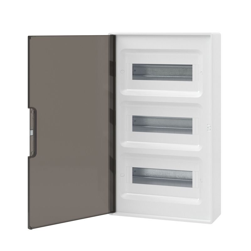 Щиток настенный Фрейм (FRAME) ЩРн-п-36 36мод. IP41 с тонированной дверцей с шинами PEN 2шт 8 отверст. + 2шт 10 отверст. бел. DKC F36W1WD