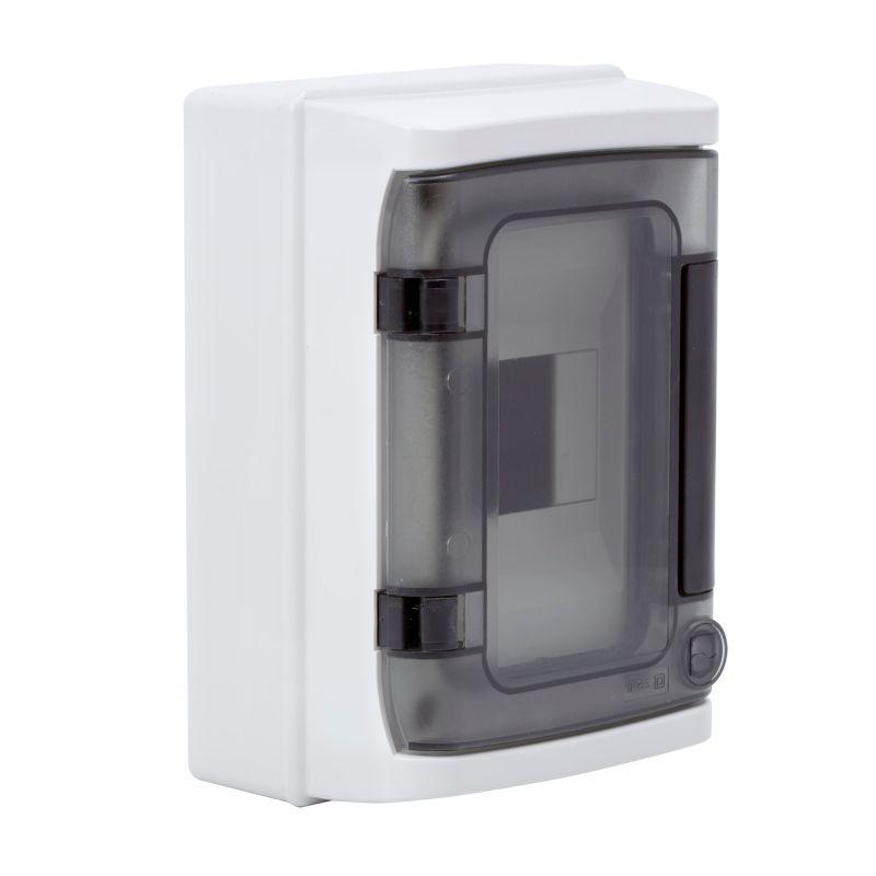 Настенный модульный щиток с прозрачной затемненной дверцей. Предназначен для монтажа в жилых и административных помещениях для установки автоматических выключателей любых производителей: таймеров, устройств защитного отключения и управления освещением и т.д. В комплект поставки входят: ручка на дверце, оцинкованная DIN-рейка, заглушки для пустых модулей, сборочные винты. Степень пыле- и влагозащиты IP 65. Ударопрочность корпуса IK09. Количество модулей - 4. Параметры щитка: ширина - 142 мм, высота - 210 мм, глубина - 100 мм. Материал - термостойкий пластик. Цвет - серый..