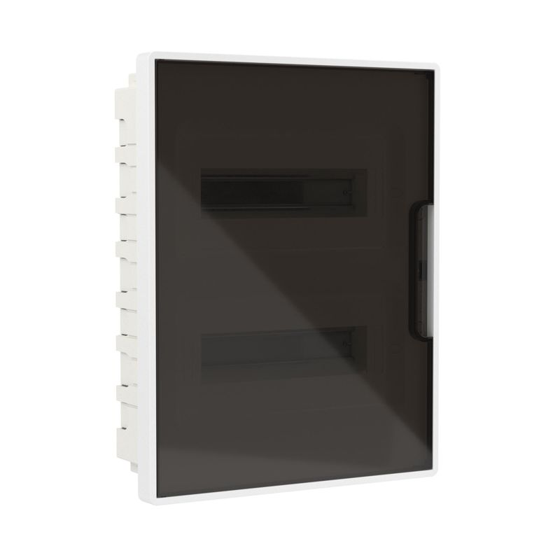 Щиток встраиваемый Фрейм (FRAME) ЩРв-п-24 24мод с тонированной дверцей с 4 шинами PEN (2шт на 8 отверст. и 2шт на 6 отверст.) бел. DKC F24B1WD