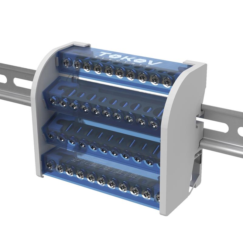 Шина на DIN-рейку в корпусе (кросс-модуль) 4 группы по 11 отверстий 125А TOKOV ELECTRICT KE-DBTB-125-4-11/3L+PEN