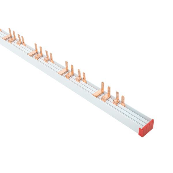 Шины соединительные представляют собой пластины, выполненные из меди (шины на 100 А – из луженой меди), закрепленные в корпусе из диэлектрического материала, не поддерживающего горение, и выпускаются стандартной длиной 1 метр. Шины соединительные делятся на два типа - FORK («вилка») и PIN («гребенка») на номинальные токи 63 и 100 А. Могут быть выполнены в одно- двух- трех- и четырехполюсном исполнений.