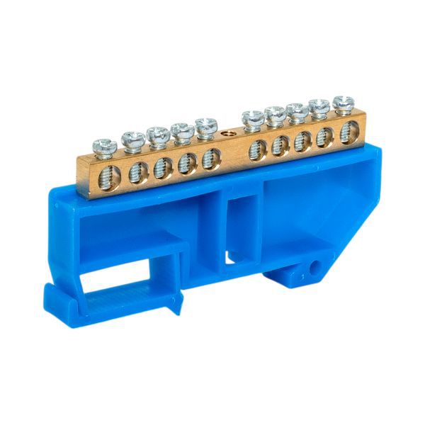 Шина нулевая N 6х9 10 отверстий синий изолятор на DIN-рейку латунь розн. стикер PROxima EKF sn0-63-10-d-r