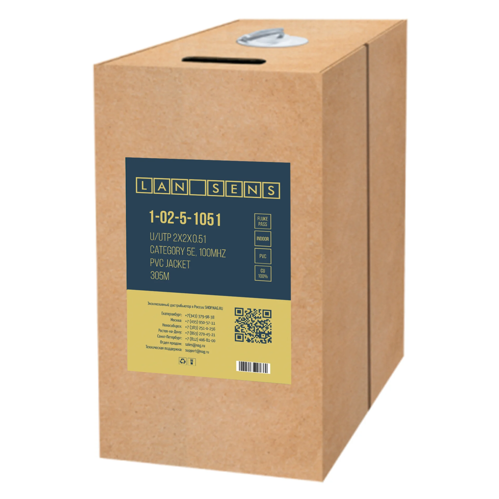 LANsens 1-02-5-1051 - двухпарный неэкранированный (U/UTP) медный кабель типа "витая пара" с цельно-медным проводником (solid) cat.5e и диаметром токопроводящей жилы 0,51 мм.