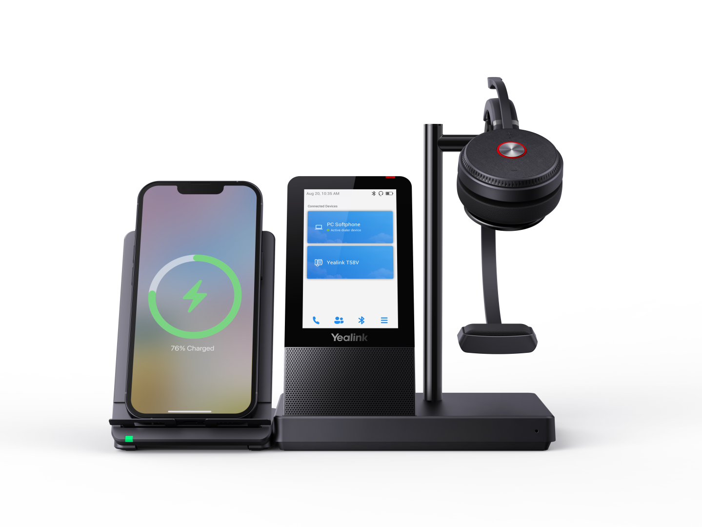 Базовая станция гарнитуры обладает сенсорным дисплеем 4'' с разрешением 480x800 пикселей, встроенным спикерфоном, беспроводной зарядной подставкой для смартфона (опционально).